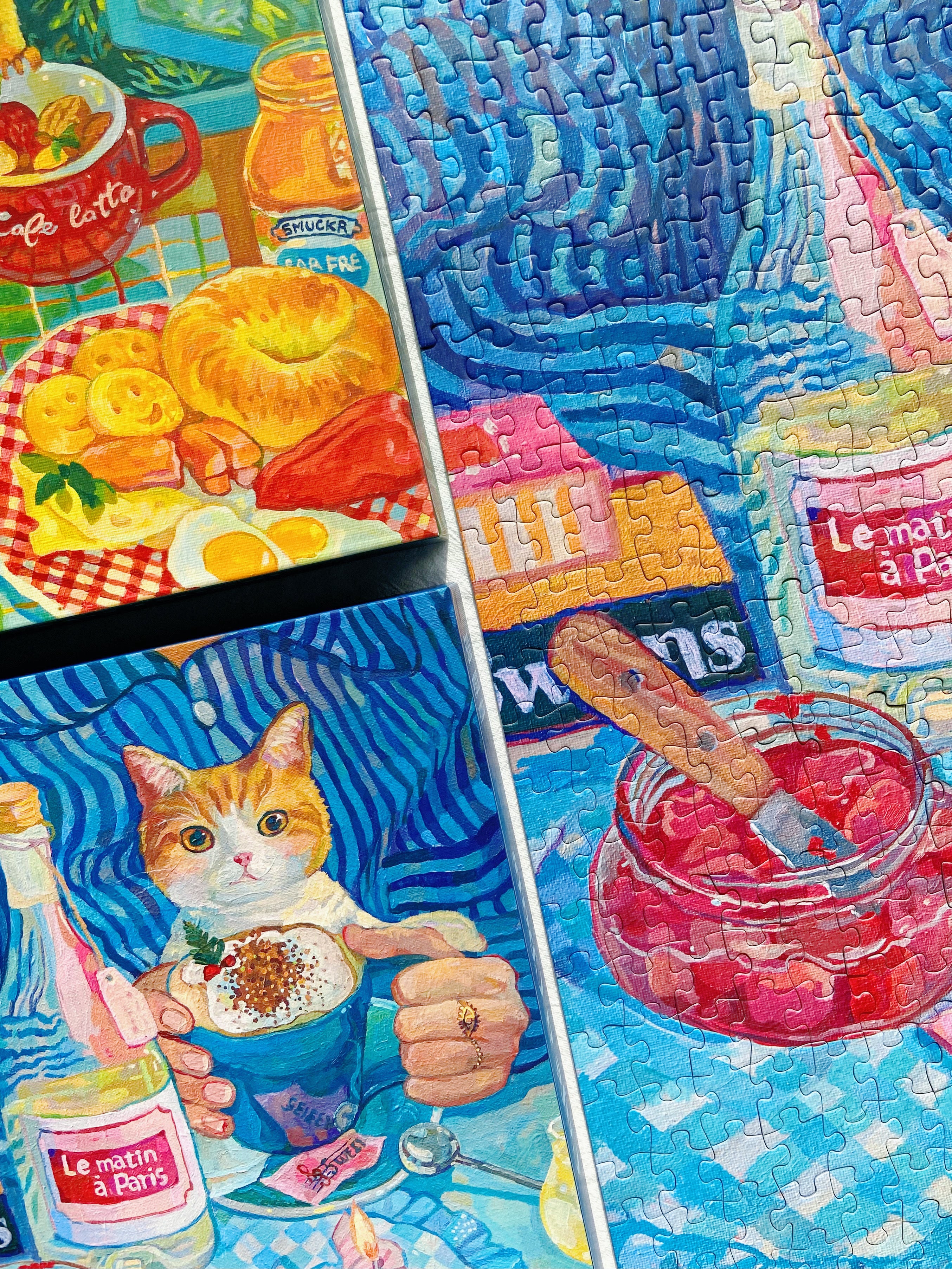 Be My Guest captures a warm, illustrated moment of everyday hospitality—where color, comfort, and companionship meet. Designed to be assembled and displayed, this 500-piece puzzle brings art into the rhythm of home.